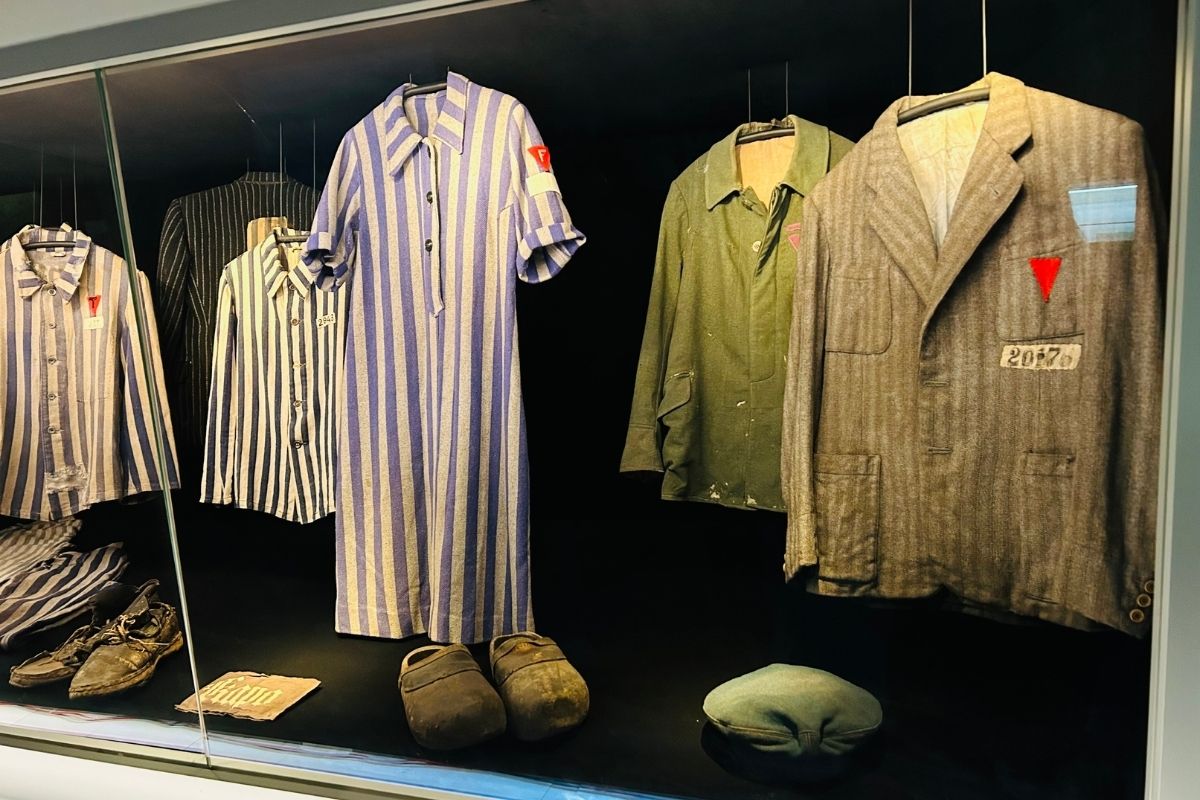 Der Tag begann mit ziemlich regnerischem und kaltem Wetter, was uns die Bedingungen vor Ort erschwerte. Die fast dreistündige Führung war aus diesem Grund eine echte Herausforderung, denn auf dem Ettersberg bei Weimar stürmte es sehr. Bei unserem Rundgang sollten die Schülerinnen und Schüler direkt miteinbezogen werden, indem sie immer wieder Fragen beantworten und nach Lösungen suchen mussten. Viele, nicht mehr vorhandene Gebäude, konnten wir uns dennoch durch Bilder und Infotafeln vorstellen. So machten wir Halt an ehemaligen Bahngleisen, einer Waffenfabrik, den Baracken, dem Krematorium und dem Effektenlager, was heute als Museum genutzt wird. Dort konnten wir uns auch für einen Moment ein wenig aufwärmen. Besonders beeindruckt waren wir von den vielen gut erhaltenen Objekten, die nach der Befreiung gefunden worden sind.