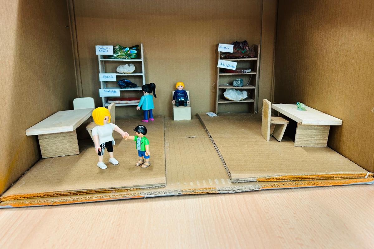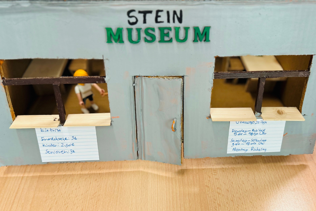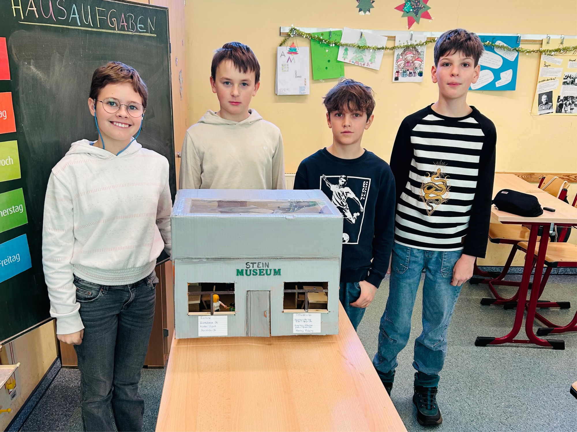 Jonah, Aurelio, Erik und Amelie aus der Klasse 5c entwarfen für das Fach Geschichte ein sehr gelungenes Museum, welches Steine ausstellt.
