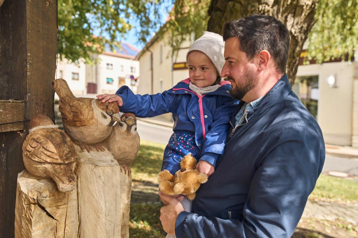 Anger mit Steintisch, auf welchem die örtliche Gerichtsbarkeit liegt / Angerbrunnen / Gemeindeschänke / Tryptychon / Naturdenkmal “Drei Linden” auf dem Hellborn / Grotte „Station“ / Katholische Kirche St. Martin – Rosenkranzaltar / Vereinshaus / Sportlerheim mit Sportplatz / Mehrgenerationen-Projekt