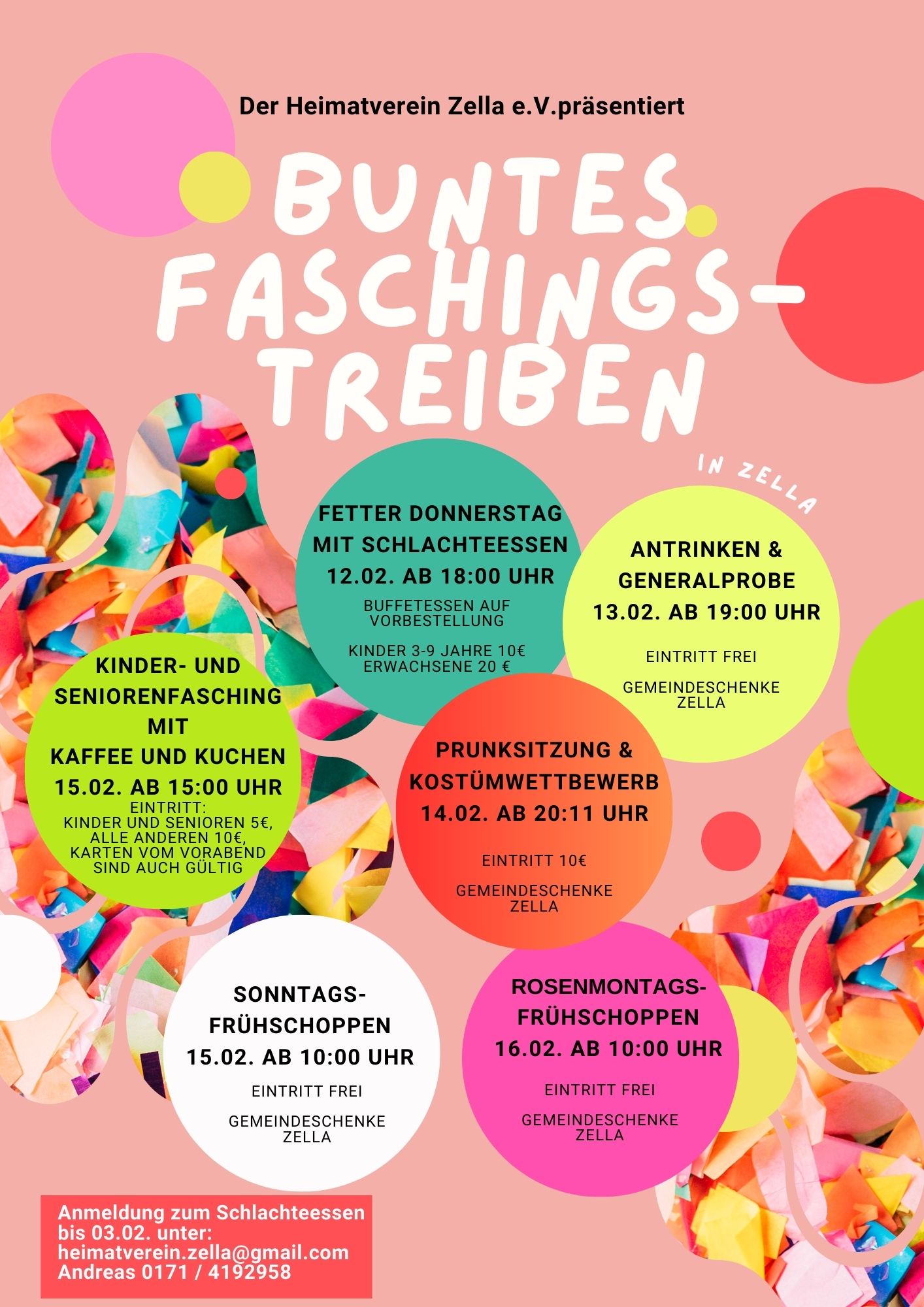 Der Heimatverein freut sich auf viele bunt kostümierte Gäste und ein fröhliches Faschingsfest in Zella. Vorbeikommen, mitfeiern und die fünfte Jahreszeit genießen! 🥳