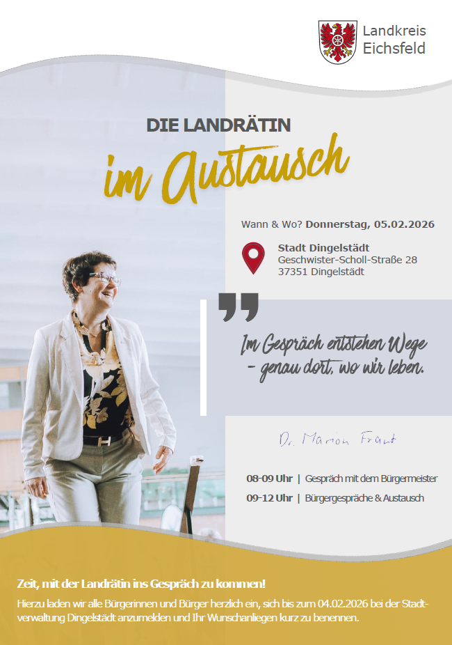 “Die Landrätin im Austausch” – Bürgersprechstunde am 05.02.2026 in Dingelstädter Bürgerhaus