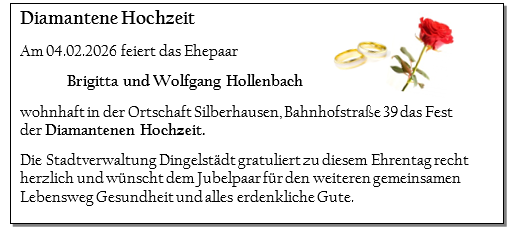 » Allgemein » Ehejubiläum Brigitta und Wolfgang Hollenbach Ehejubiläum Brigitta und Wolfgang Hollenbach
