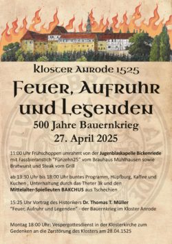 » Veranstaltung » Feuer, Aufruhr und Legenden – 500 Jahre Bauernkrieg Feuer, Aufruhr und Legenden – 500 Jahre Bauernkrieg Datum/Zeit Date(s) - 27. April 2025 - 28. April 2025Ganztägig Kategorien Bickenriede Stadt Dingelstädt