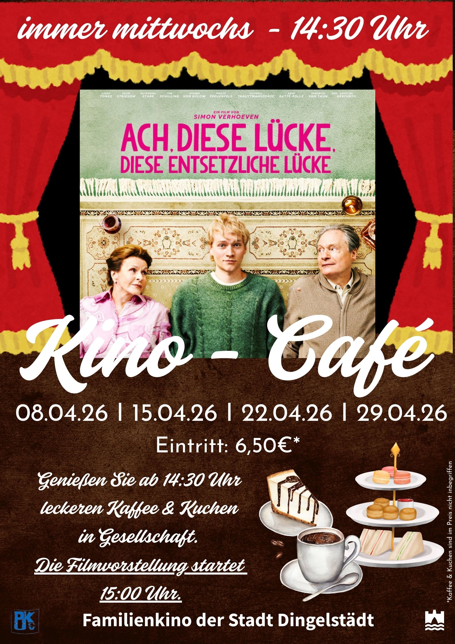 » Veranstaltung » Kino-Café – “Ach diese Lücke, diese entsetzliche Lücke” Kino-Café – “Ach diese Lücke, diese entsetzliche Lücke” Datum/Zeit Date(s) - 8. April 202614:30 - 17:30 Veranstaltungsort Bürgerhaus Dingelstädt Kategorien Stadt Dingelstädt