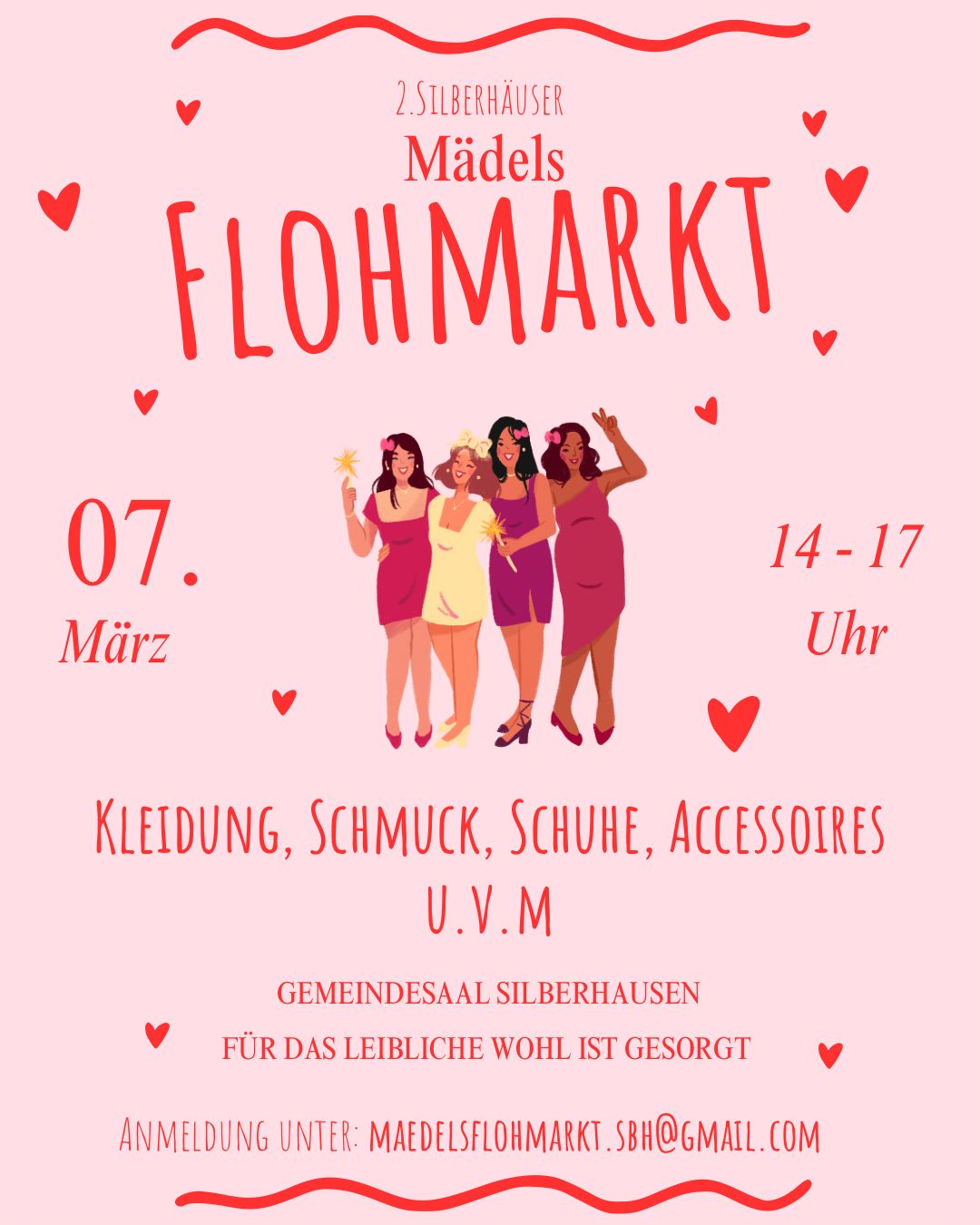 » Veranstaltung » Mädelsflohmarkt in Silberhausen Mädelsflohmarkt in Silberhausen Datum/Zeit Date(s) - 7. März 202614:00 - 17:00 Veranstaltungsort Ortschaft Silberhausen Kategorien Highlights Silberhausen