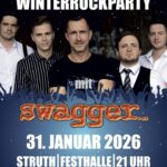 31. Januar 2026 - 1. Februar 2026 @ 21:00 - 3:00 - Winterrockparty mit SWAGGER am 31. Januar 2026 in der Festhalle Struth Struth. Am Samstag, den 31. Januar 2026, wird die Festhalle Struth zur Rockbühne: Die Band SWAGGER lädt zur großen Winterrockparty ein und verspricht einen Abend voller Live-Musik, Emotionen und besonderer Highlights. Bereits ab 21 Uhr beginnt der Abend mit einem außergewöhnlichen Empfang. Die Besucherinnen [...]