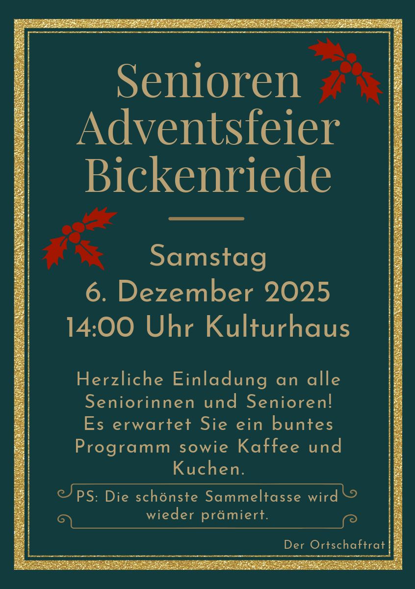 Seniorenweihnachtsfeier des Ortschaftsrats Bickenriede