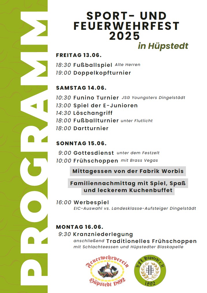 » Veranstaltung » Sport-und Feuerwehrfest Hüpstedt Sport-und Feuerwehrfest Hüpstedt Datum/Zeit Date(s) - 13. Juni 2025 - 16. Juni 20250:00 Kategorien Highlights Hüpstedt Stadt Dingelstädt