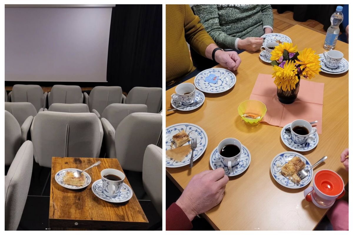Genießen Sie erst ein Stück mit Liebe gebackenen Kuchen und eine heiße Tasse Kaffee, bevor Sie ab 15:00 Uhr gemeinsam einen Film in unserem Kinosaal schauen.