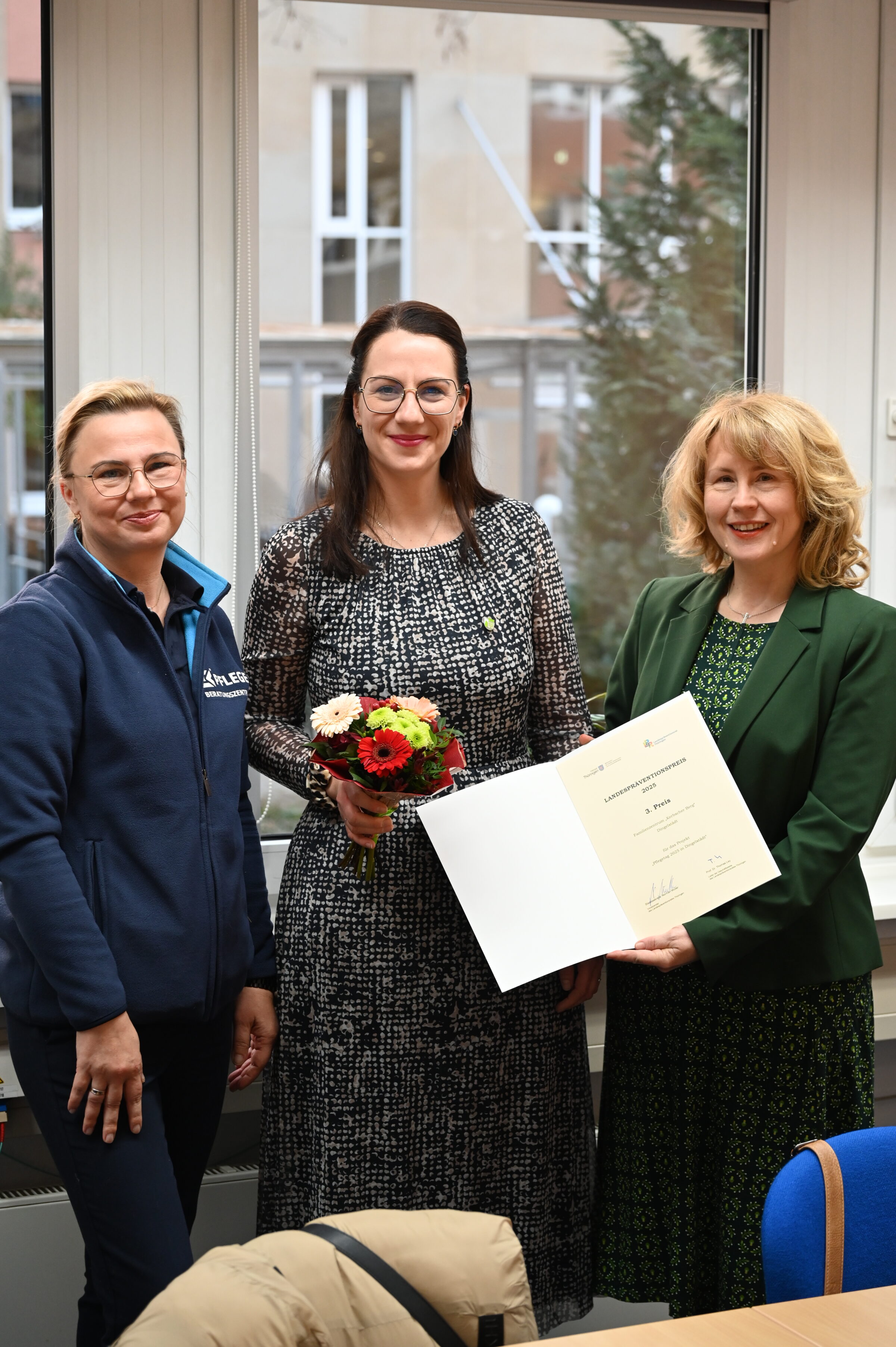 Kristin Fischer (EK Pflege, Beratungszentrum), Jana Amonat(Stadt Dingelstädt) und Pia Schröter (Familienzentrum Kerbscher Berg) nahmen den Preis in Erfurt entgegegen. Fotos: Carsten Ludwig/TMIKL