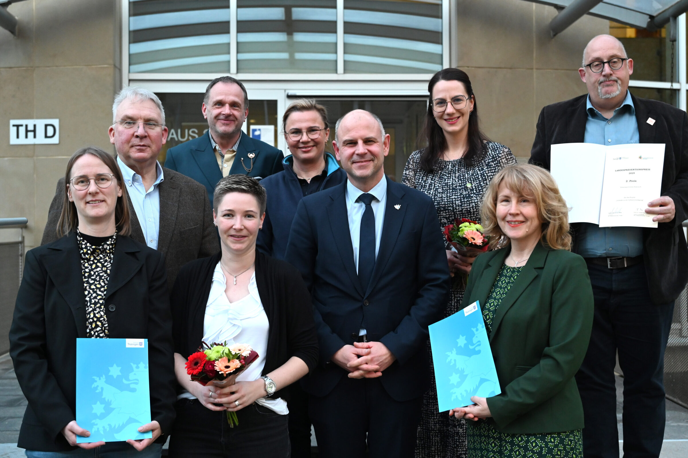Freude über eine besondere Auszeichnung in Dingelstädt: der vom Familienzentrum „Kerbscher Berg“, der Stadt Dingelstädt und EK Pflege ausgerichtete Pflegetag wurde mit dem 3. Platz des Landespräventionspreises 2025 geehrt. Innenstaatssekretär und Vorsitzender des Thüringer Landespräventionsrats, Norman Müller, überreichte den Preis im Rahmen einer Feierstunde am 02. Dezember in Erfurt.