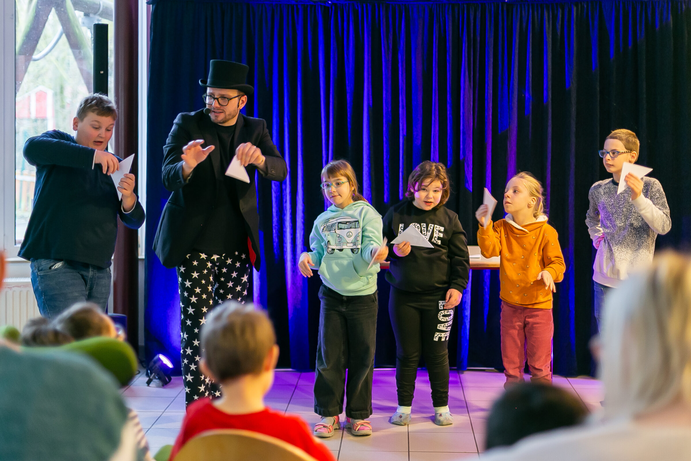 Die Kinder freuten sich besonders über das Maskottchen ‚Onkel Frankie‘, einen kleinen Fellfreund, der humorvoll in die Zauberei eingebunden wurde. Der Zauberer hatte zahlreiche Tricks im Gepäck: einen Säbelkasten-Trick, bei dem Frankie augenscheinlich durchtrennt wird, eine magische Zaubertüte, in der Sterne verschwinden, sowie Illusionen, die den Kopf des Zauberers ballongroß erscheinen lassen.