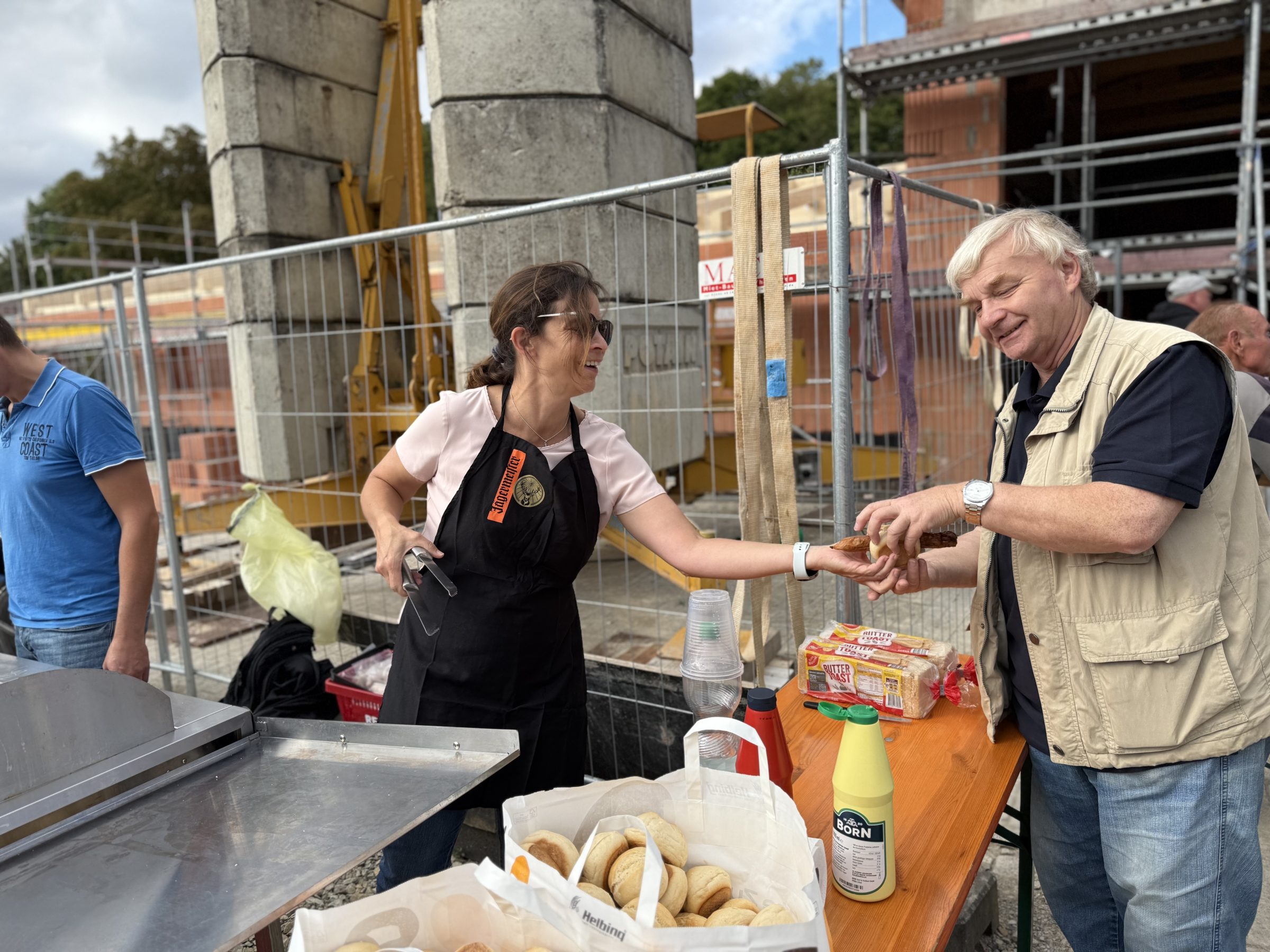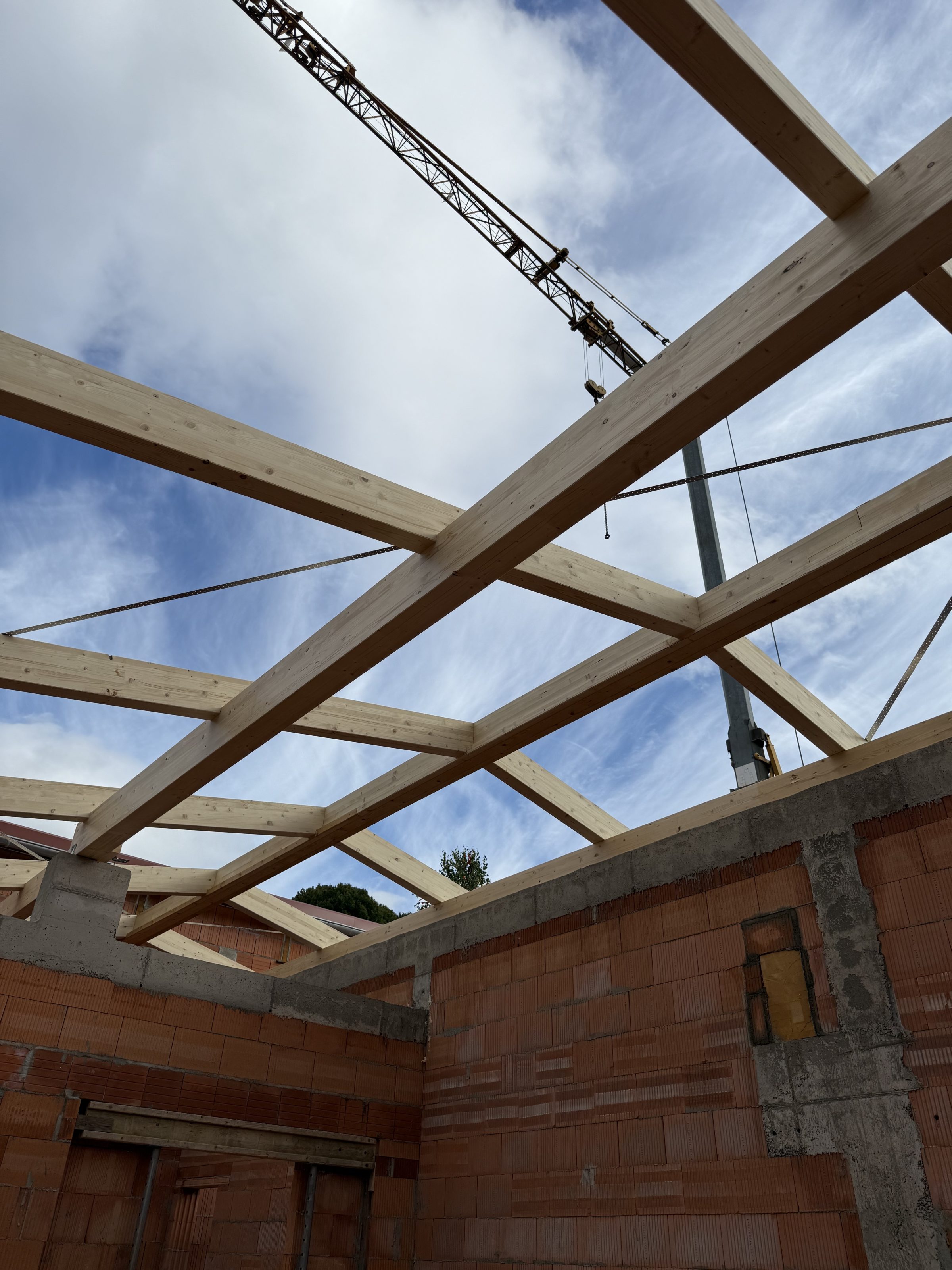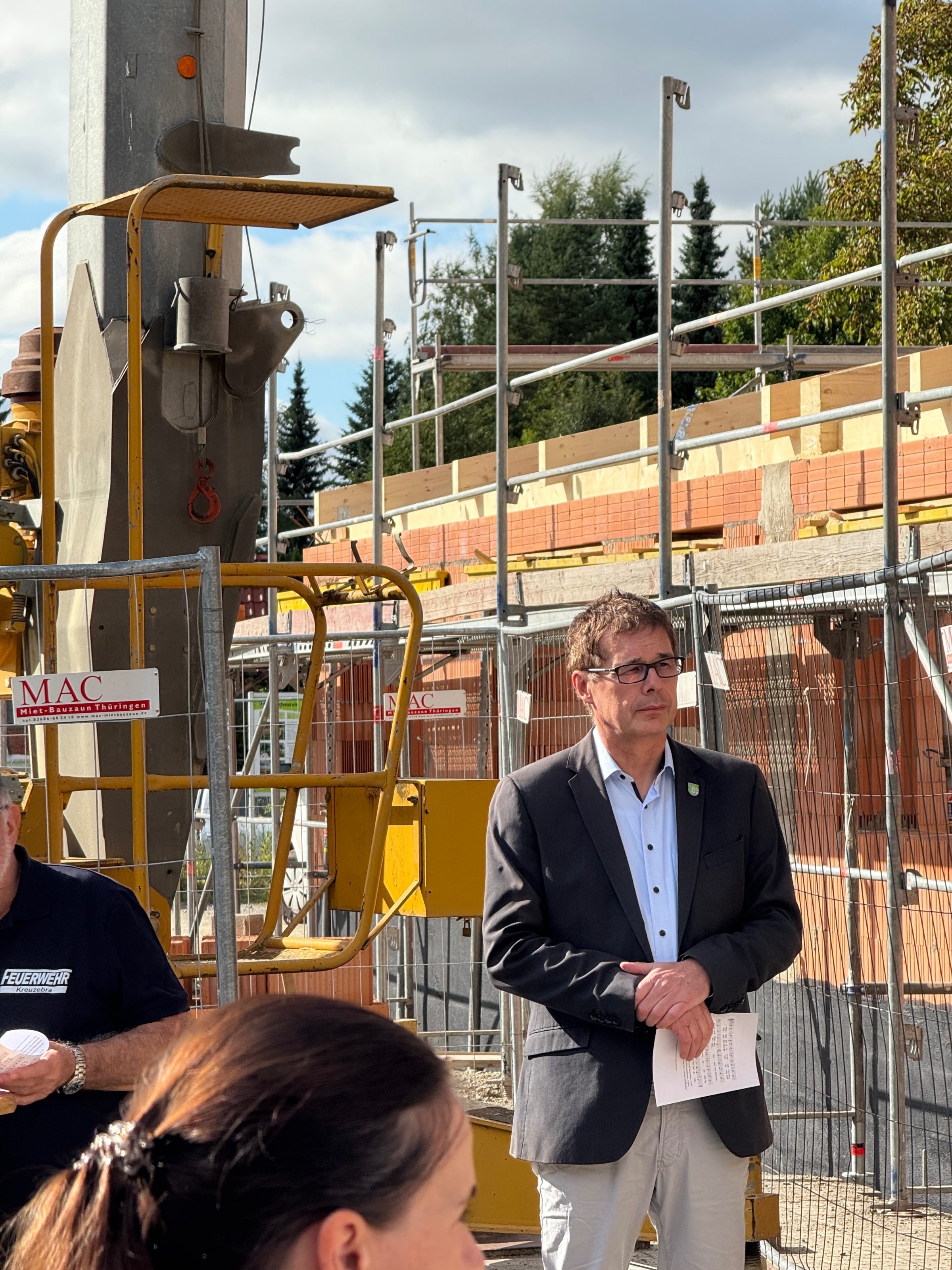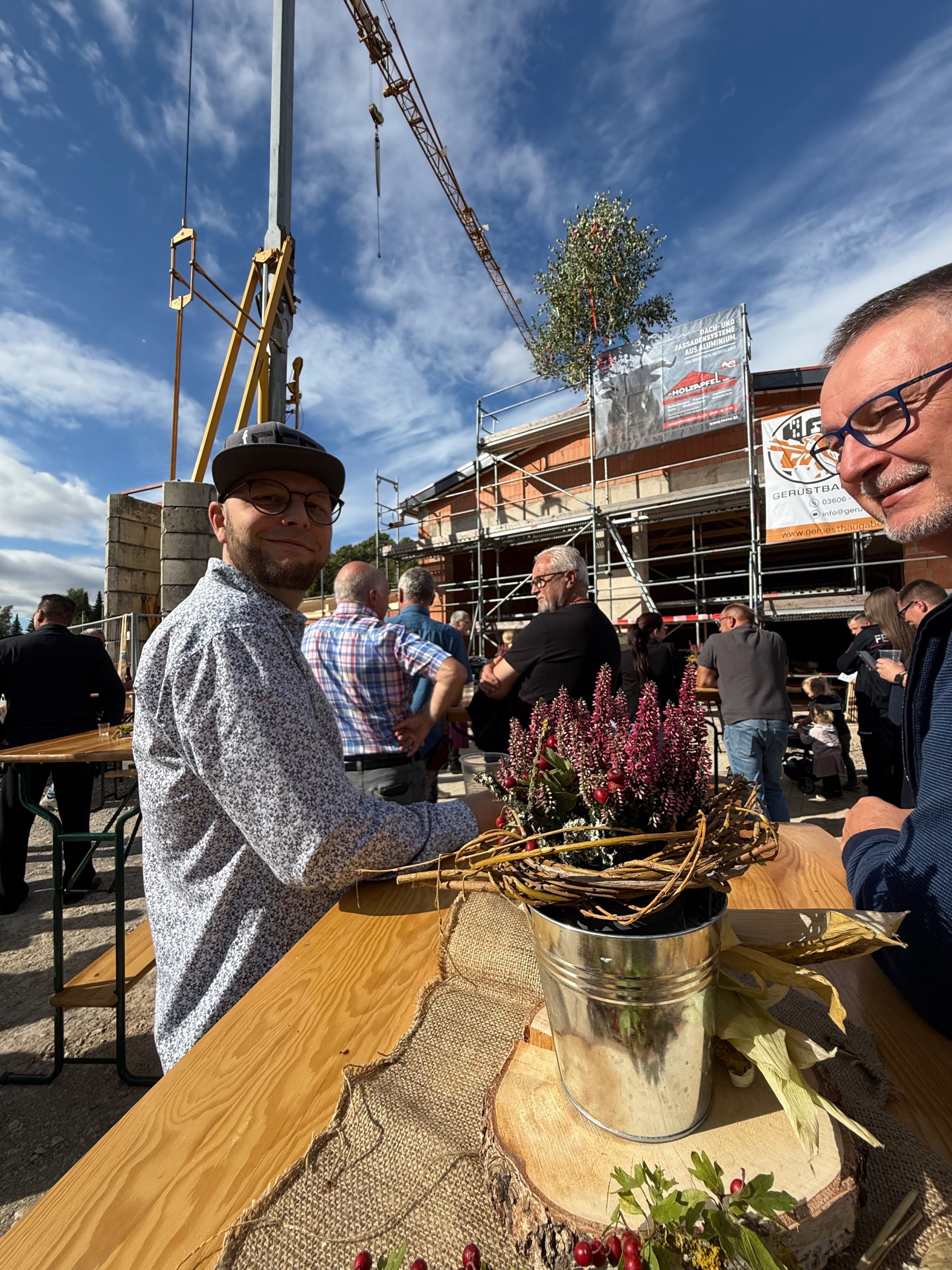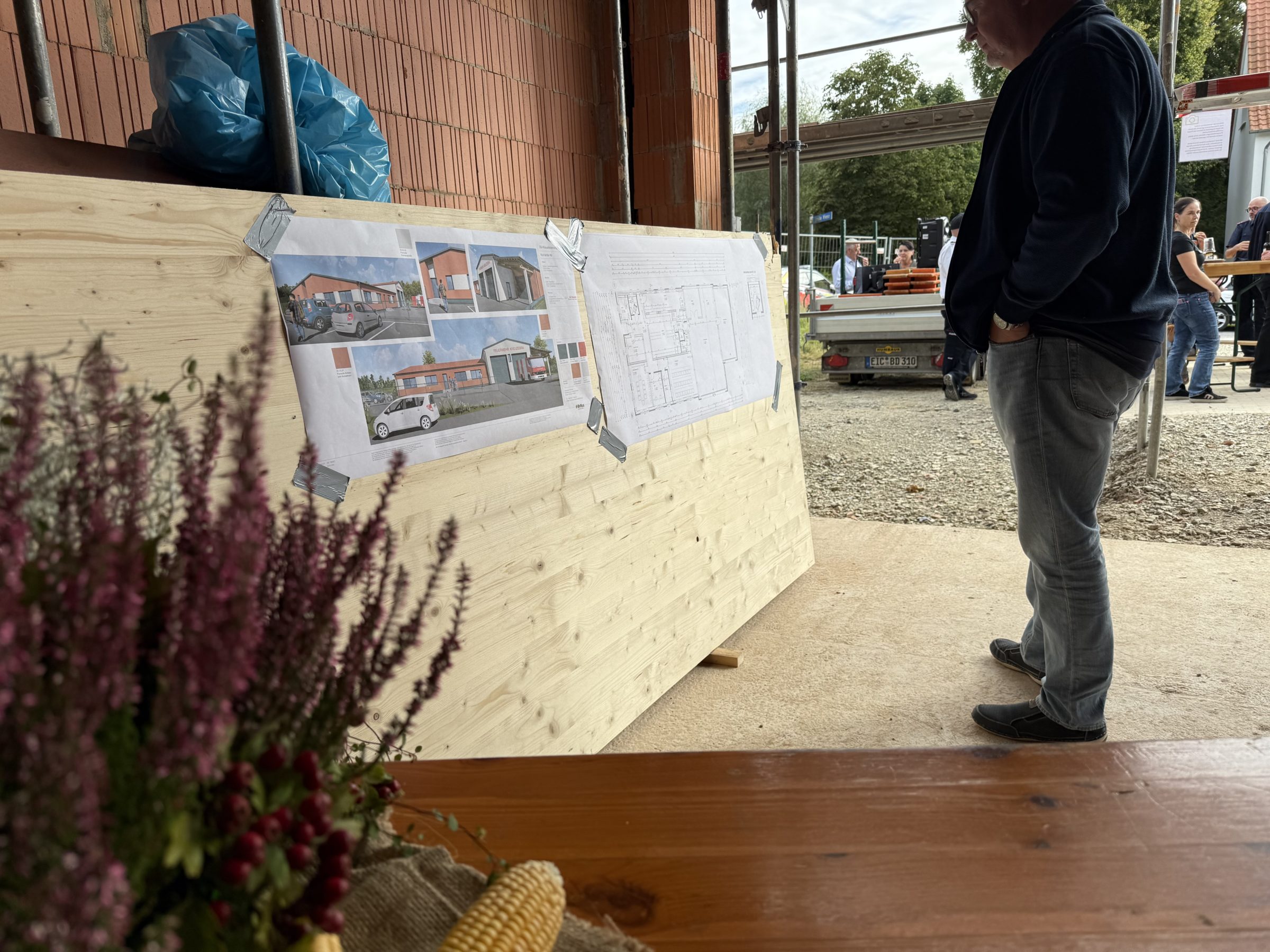 Beim Richtfest Anfang September stellte Diakon Roland Schmerbauch das Gebäude und den weiteren Bau unter göttlichen Segen. Zimmermann Martin Struthmann durfte den traditionellen Richtspruch halten.