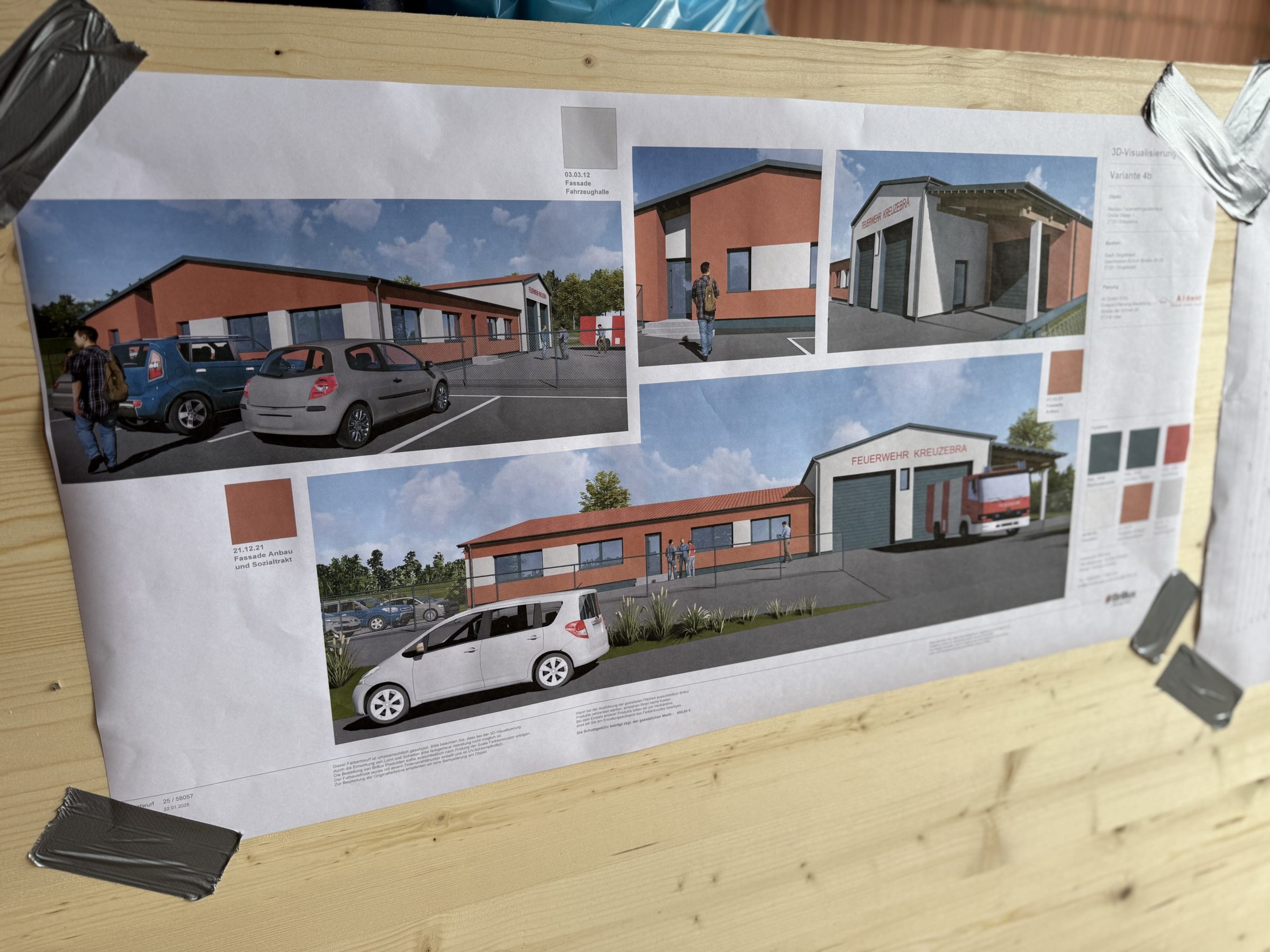 Stichwort: Notwendig. Das war der Neubau des Feuerwehrgerätehauses in Kreuzebra aufgrund des Zustandes. Der bisherige Standort entsprach nicht mehr den gesetzlichen Unfallverhütungsvorschriften und war für moderne Feuerwehrfahrzeuge nicht ausgelegt. Ein Umbau oder eine Erweiterung war laut Bauamt der Stadt Dingelstädt nicht möglich, weshalb die Kommunalberatung der Thüringer Aufbaubank (TAB) die Errichtung eines neuen, zukunftsfähigen Gebäudes empfahl. „Der Neubau soll die Arbeitsbedingungen sowie die Einsatzfähigkeit der Feuerwehr erheblich verbessern“, sagt Bürgermeister Andreas Fernkorn. Damit setzt die Stadt ein klares Zeichen für die Zukunft der Feuerwehr und die Sicherheit ihrer Bürger. Der Stadtrat sprach sich mehrheitlich für dieses Großprojekt aus, wofür andere Baumaßnahmen im Zeitplan nach hinten verschoben wurden.