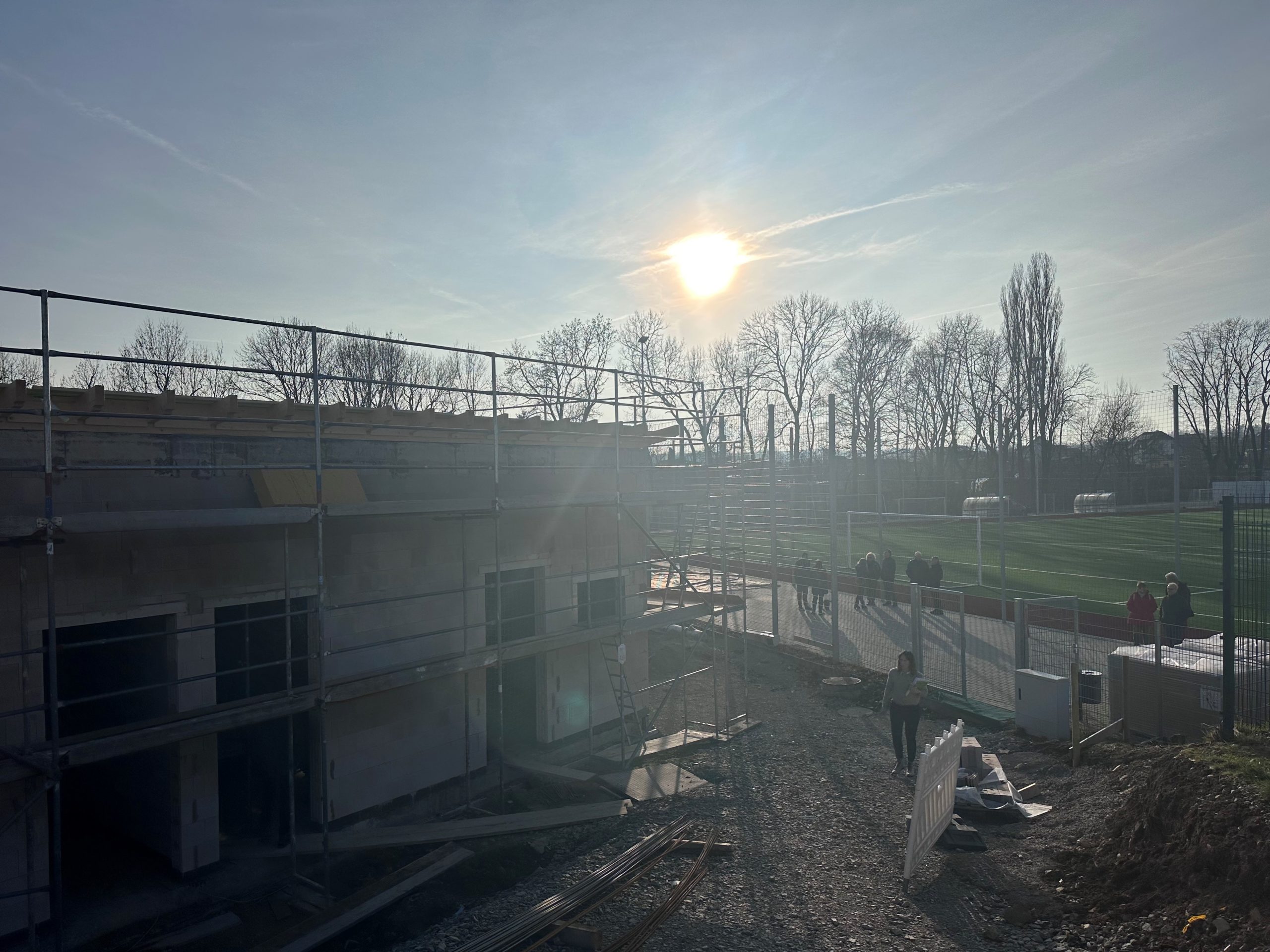 Wo einst marode Umkleide-Container standen, entsteht ein modernes Funktionsgebäude. Ende September dieses Jahres ist die Fertigstellung geplant.